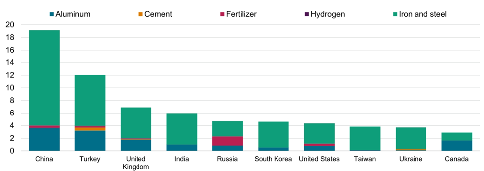 Top suppliers of goods in EU CBAM scope, 2025 ($B), as of March 16, 2026